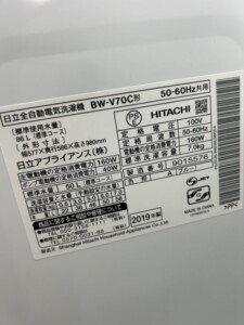 茨城県龍ヶ崎市でHITACHI洗濯機 BW-V70C(2019年製)を出張買取|使用感はあるものの丁寧に査定しました