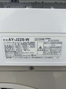 SHARP(シャープ)2.2kw ルームエアコン AY-J22S-W 2019年製
