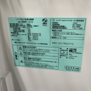 大阪府大阪狭山市でハイアール冷凍冷蔵庫 OBBR-121Aを出張買取|2025年製・状態良好なため高価査定につながりました