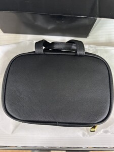 お持ちいただいた化粧ポーチは、外箱および本体ともに目立つ汚れや破れはなく、全体的にきれいな状態でした。角や縁に若干のスレはありましたが、使用感はほとんど感じられず、内側のファスナーや持ち手に不具合もありませんでした。付属品は箱のみで、説明書等の付属物はありませんでしたが、本体のみでも買取対象と判断いたしました。