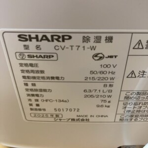 今回は群馬県吾妻郡東吾妻町にお住まいの40代男性・会社員・親子世帯・賃貸(マンション)のお客様より、SHARP 除湿機 CV-T71-W(2025年製)を出張買取にてご依頼いただきました。