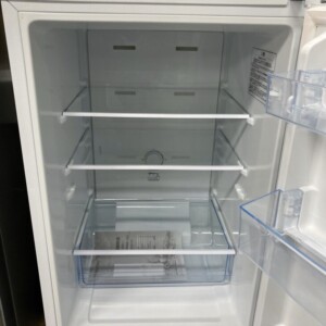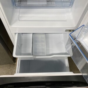 お預かりしたHR-D16Fは、外装は目立つ傷の少ないきれいな状態で、全体的に白さが保たれていました。庫内の棚板や引き出しは透明度が高く、割れや黄ばみもありません。冷蔵・冷凍ともに動作確認は問題なし。付属の製氷皿やケース類も揃っており、2022年製としては良好な状態を維持していました。