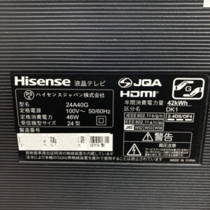 埼玉県美里町へ液晶テレビ買取 Hisense 24A40G 動作品・軽微な使用感ありのため適正価格で査定しました