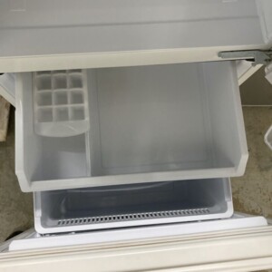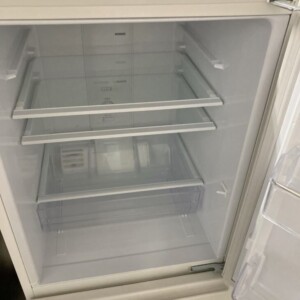 外観はホワイトカラーで、目立つ傷やへこみのないきれいな状態でした。扉の開閉もスムーズで、パッキンの劣化も見当たりません。庫内は棚板・ケースが欠品なく残っており、冷凍室にも割れや汚れは確認されませんでした。2022年製という比較的新しいモデルのため、中古市場でも需要の安定した冷蔵庫として評価できる状態でした。