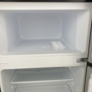外観はブラックカラーで、目立つキズや凹みはなく、きれいな状態が保たれていました。冷凍室・冷蔵室ともに庫内は清潔で、棚板やケース類の欠品もありません。製氷皿も残っており、プラスチック部分の割れや歪みも見られませんでした。2023年製という比較的新しい年式も評価につながるポイントとなりました。