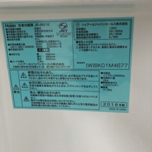 神奈川県茅ヶ崎市にてHaier冷蔵庫 JR-N91K(2016年製)を出張買取 無料引取りで対応しました
