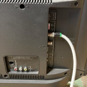 お送りいただいたGT32SYYは、2017年製ということもあり経年による使用感が目立つ状態でした。液晶パネルには細かな擦れや映り込み跡が確認され、背面には埃の付着も見られました。付属品は電源ケーブルのみで、リモコンなどは欠品していました。
