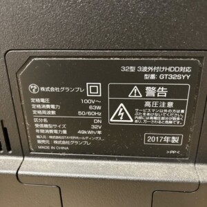 愛知県一宮市へ液晶テレビ GT32SYY 出張買取 2017年製・使用感ありのため無償引き取りで対応しました