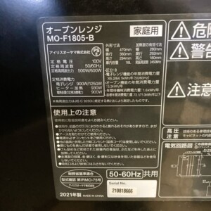千葉県千葉市でオーブンレンジ MO-F1805-B を出張買取|2021年製・使用感ありでも適正価格で査定しました
