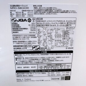 今回のMRO-S8CA(W)2025年製は、使用回数が少なく、外観・庫内ともに非常に良好な状態であったことから、市場評価が高いモデルとして16,500円での査定となりました。新品に近い保存状態であった点が大きく影響し、他社よりも高い買取額をご提示することができました。