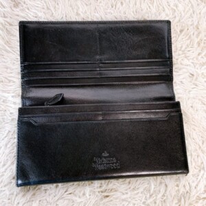 お預かりした長財布は、外装に擦れ・小傷・角の使用感が確認できる状態でした。背面にはVivienne Westwood特有の手紙モチーフの型押しデザインがしっかり残っており、大きな破れなどはありません。内側もカードポケットの縁に使用感はあるものの、大きな破損は見られず使用可能な状態でした。ファスナー開閉も問題なく、革のハリが残っていた点を評価しています。