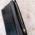 お預かりした長財布は、外装に擦れ・小傷・角の使用感が確認できる状態でした。背面にはVivienne Westwood特有の手紙モチーフの型押しデザインがしっかり残っており、大きな破れなどはありません。内側もカードポケットの縁に使用感はあるものの、大きな破損は見られず使用可能な状態でした。ファスナー開閉も問題なく、革のハリが残っていた点を評価しています。