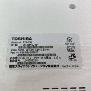 dynabook T75/EWは2016年前後のモデルであり、現在より5年以上前のノートパソコンに該当します。この年代のPCは中古市場で需要が低く、動作が不安定な場合は再販が難しいため、今回は0円でのお引き取りとなりました。