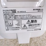RC-ME30-Wはコンパクトで需要が高く、中古市場でも比較的動きの良いモデルです。今回は使用感が少なく、内釜やボタン周りの状態が良好であった点に加え、2021年製の新しいモデルという点を評価し、500円での査定額をご提示しました。