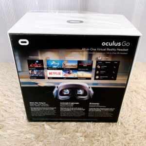 お送りいただいたOculus Goは、外箱がビニール包装されたままの未開封に近い状態でした。外装フィルムには軽いシワがありますが、箱本体に目立つ汚れやへこみはなく、コレクション品としても扱える良好なコンディションです。付属品はすべて揃っている想定で確認し、64GBモデルとして市場価値の高い状態であることを確認しました。