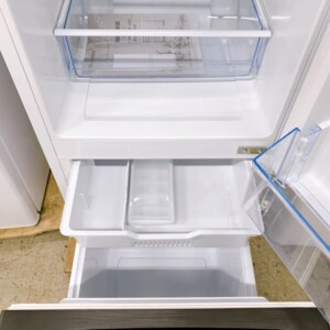 お送りいただいた冷蔵庫は、外装の目立つキズが少ないきれいな状態でした。庫内は清潔に保たれており、棚板・ドアポケット・野菜ケースなどの付属パーツも欠けることなく揃っていました。冷却動作もしっかりと確認でき、2022年製という年式の新しさも評価につながりました。内部のプラスチックケースに多少の使用感はあるものの、再販に影響するような大きなダメージは見られませんでした。