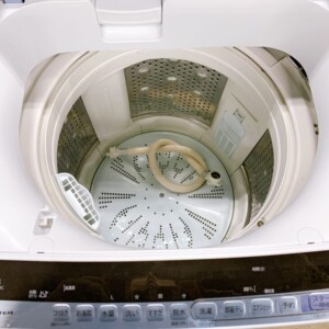 お預かりした洗濯機は外観に大きな傷や汚れがほとんどなく、天面・操作パネルも綺麗な状態でした。槽内部もサビや黒カビの付着が少なく、全体的に清潔が保たれており、7kgモデルとしては十分良好なコンディションです。付属の排水ホースも揃っており、動作確認も問題ありませんでした。