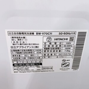 今回は藤岡市にお住まいの60代・夫婦(世帯として依頼)より、HITACHI 全自動電気洗濯機 BW-V70C(2019年製)の出張買取をご依頼いただきました。ご依頼者さまは自営業・夫婦世帯・持ち家(一戸建て)にお住まいで、買い替えに伴う不要品整理のためお申し込みをいただきました。