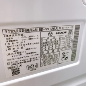 今回は岡山県美作市にお住まいの30代男性の会社員より、日立 ドラム式洗濯乾燥機 BD-SV120JL(2024年製)を出張買取にてご依頼いただきました。