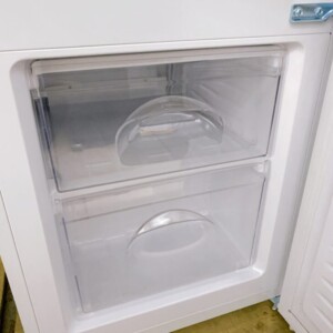 お買取した冷蔵庫は、扉・側面ともに大きなへこみや目立つ傷はなく、全体的に綺麗なコンディションで、庫内のガラス棚は割れや欠けもなく、野菜ケースやドアポケットも清潔に保たれていました。冷凍室も内部の変色が少なく保管状況の良さが分かります。2023年製と比較的新しいモデルである点も査定では高評価となりました。