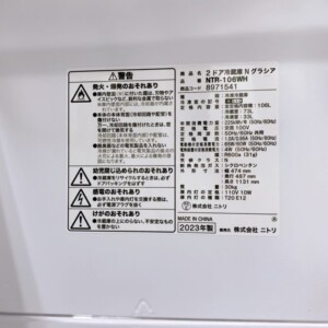今回は三重県名張市の30代の主婦の方よりニトリの2ドア冷蔵庫NTR-106W2023年製を出張買取にてご依頼いただきました。