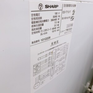 千葉県印西市にてSHARP全自動洗濯機ES-T712-Tを出張買取 使用感はあるものの動作良好な状態で査定しました