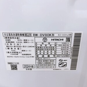 日立のBW-DV80Kは2024年製の高年式モデルであり、洗濯8kg・乾燥4.5kgの容量を備えた人気機種です。AIお洗濯機能やナイアガラビート洗浄などの便利機能が評価される一方で、縦型乾燥機能付きタイプは中古市場での取引価格が安定しています。
