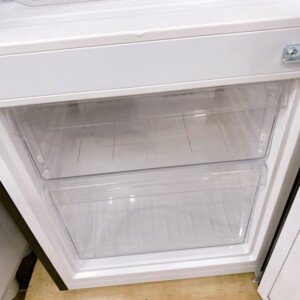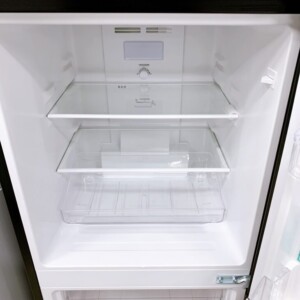 お預かりした冷蔵庫は全体的に前面に擦れ・細かな傷が見られる使用感のある状態でした。一方、庫内はとてもきれいで、棚板・野菜ケース・冷凍室の引き出しなどの付属パーツが完備しており、臭いや汚れもほとんどない良好なコンディションでした。動作確認も問題なく、再販可能な状態です。