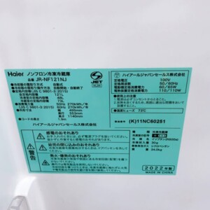 滋賀県米原市でHaier 冷凍冷蔵庫 JR-NF121NJ(2022年製)を出張買取 使用感ありのため適正価格で査定しました
