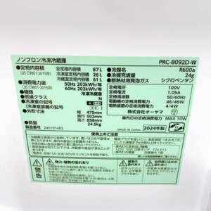 栃木県那須塩原市でアイリスオーヤマ PRC-B092D-W 2024年製 冷凍冷蔵庫を出張買取|きれいな状態で適正査定しました