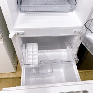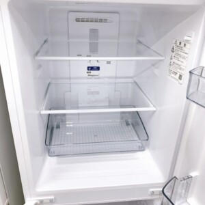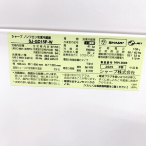 お預かりしたSJ-GD15P-Wは、外観に大きなキズやへこみのないきれいな状態で、白いボディもくすみが見られませんでした。庫内も使用感がほとんどなく非常に清潔で、棚板・野菜ケース・ドアポケットの欠品なし。冷凍室には付属の製氷トレイも揃っており、内部パーツの透明度も高く、丁寧に使われていたことが確認できました。動作確認では冷蔵・冷凍ともに問題がなく、冷却能力も安定。2025年製で年式が新しいため、中古市場でも評価されやすい状態でした。