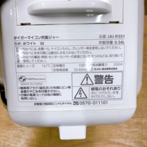 千葉県千葉市へ炊飯器買取 TIGER JAI-R551 全体に使用感ありのため適正価格で査定しました