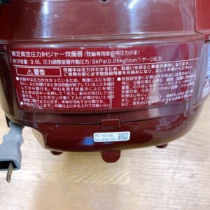 群馬県伊勢崎市にて東芝 真空圧力IHジャー炊飯器 RC-10VSL を出張買取 表面に使用感ありのため状態を考慮した査定となりました