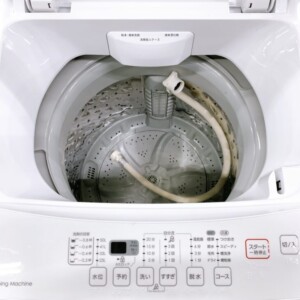 お預かりした洗濯機は、外観に軽度の擦れや汚れが見られる一般的な中古状態でした。庫内はやや使用感があるものの、動作確認では洗浄・脱水ともに正常に行えました。排水ホース・給水ホースも揃っており、引っ越し等で多い破損もない状態でした。