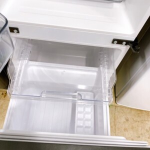 お預かりしたSJ-D15H-Hは、外観の扉部分に複数の目立つ傷が確認できました。一方で、庫内は清潔に保たれており、棚板の割れや汚れもなく非常に良好な状態でした。パッキンの劣化も見られず、庫内に関しては十分評価できる状態でした。