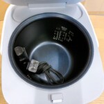 お預かりした炊飯器は外観に細かな擦れや使用痕が見られる状態で、天面には軽い汚れが確認できました。ただし動作は良好で、ディスプレイの点灯や各ボタン操作にも問題はありません。内釜のコーティング剥がれも少なく比較的きれいで、付属の電源コードも揃っていました。全体としては中古品として標準的な状態でした。
