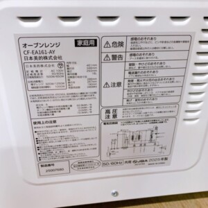 お預かりしたComfee’ CF-EA161-AYは、庫内の焦げ付きが少なく、外装の汚れも軽い拭き上げで落ちる程度と全体的に綺麗な状態でした。ガラス扉・操作パネル・本体側面にも大きな傷は見られず、庫内トレイも良好。動作も問題なく、温め・解凍・オーブン機能のすべてが正常に動作していました。