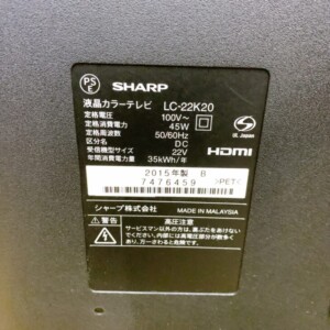 埼玉県東秩父村でシャープ LC-22K20(2015年製)を出張買取 中古・動作確認済みの22インチテレビを適正査定しました