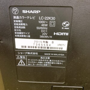 茨城県大子町でシャープ LC-22K30(2015年製)を出張買取 中古・動作確認済みの22インチテレビを適正査定しました