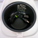 お預かりしたRC-ME30-Wは、全体的に使用感がある状態で、とくに外観前方に傷が確認できました。内部の釜には焦げ付きは少なく、加熱や保温などの基本動作は問題なく作動しました。付属品は本体と内釜のみで、取扱説明書や箱はありませんでした。