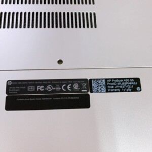 お預かりしたProBook 450 G5は、外観・内部ともに非常に綺麗な状態でした。天板やキーボード周りに目立つ傷はなく、使用頻度が低かったことがうかがえます。動作面でも、電源投入、Wi-Fi接続、キーボード入力、タッチパッドの反応など基本操作は問題なく、実務用途でも十分利用可能なコンディションでした。付属品は電源アダプター1個が揃っていました。
