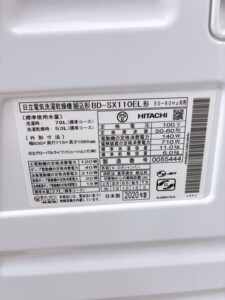 群馬県邑楽郡板倉町で日立 BD-SX110EL(2020年製)洗濯乾燥機を出張買取 きれいながら使用感のある状態で査定しました