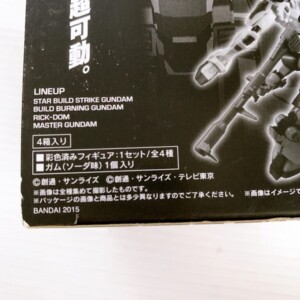 お預かりしたASSAULT KINGDOM 8 は外箱に軽いスレ程度のみで、未開封かつ非常にきれいな状態でした。ラインナップは「スター・ビルド・ストライクガンダム」「ビルドバーニングガンダム」「リック・ドム」「マスターガンダム」の全4種が揃っている希少性の高いアイテムです。破れや凹みといった大きなダメージもなくコレクション品としての価値を十分に保った状態でした。