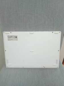 お預かりしたPC-NM550KAWは天板に大きめのステッカーが貼付されている状態で、取り外し跡が残る可能性がある点を確認しました。また、本体底面には細かな汚れや小傷が見られ、全体的に日常使用に伴う使用感がある印象でした。液晶面・キーボードに大きな破損はなく、動作も問題なく起動できる状態でした。