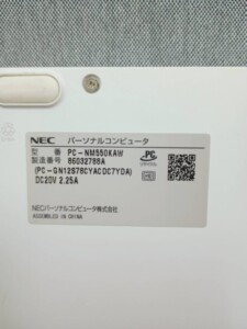 佐賀県小城市でNEC LaVie PC-NM550KAWを出張買取 天板ステッカーあり・全体的に使用感のある状態で査定しました
