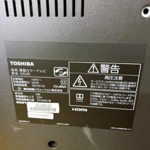 東京都日野市にて東芝 液晶テレビ 32S20 を出張買取 使用感あり・背面に傷ありでも適正価格で査定しました