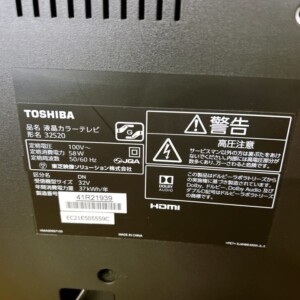 群馬県伊勢崎市にて東芝 32S20 を出張買取 背面に傷・使用感ありでも適正価格で査定しました