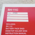 お送りいただいたSH-11Cは、外箱・付属のバッテリーパックSH23、卓上ホルダSH32、取扱説明書が揃ったセット品でした。外箱には経年による軽いスレはありましたが、内部の付属品や携帯本体は使用感の少ない良好な状態で、年代物としては大変保存状態の良いお品でした。