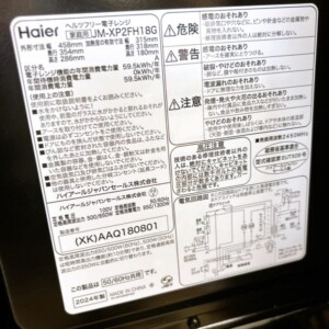 今回は常総市にお住まいの30代女性・主婦より、Haier(ハイアール)ヘルツフリー電子レンジ JM-XP2FH18G(2024年製)を出張買取でご依頼いただきました。お住まいは賃貸アパートで、キッチン家電の入れ替えに伴い不要になった電子レンジの整理をしたいとのことでした。