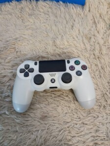 DUALSHOCK4(ホワイト)はスティックゴムの使用感と細かな傷が見られましたが、動作に影響する問題は確認されませんでした。全体としては中古品として一般的な使用感のある状態でした。